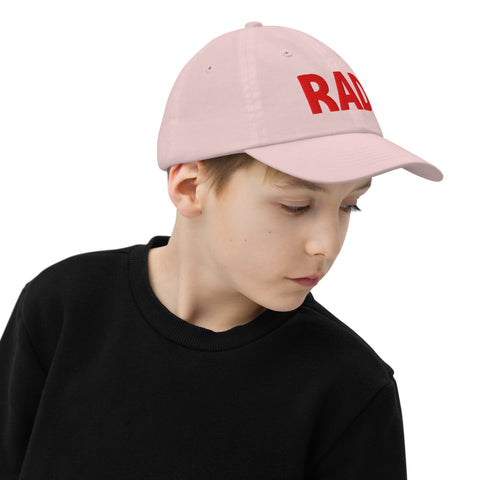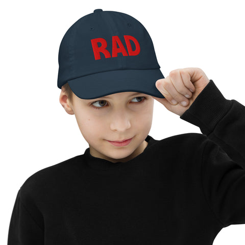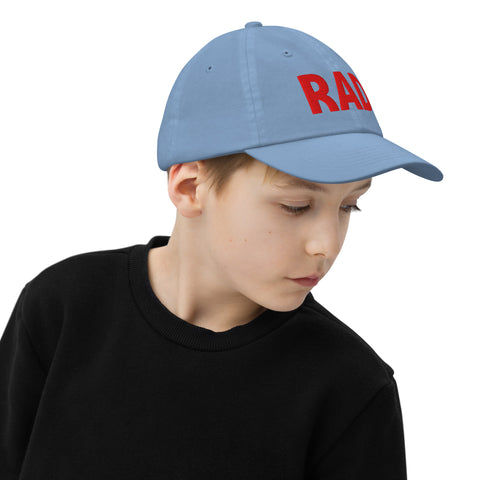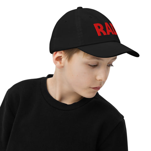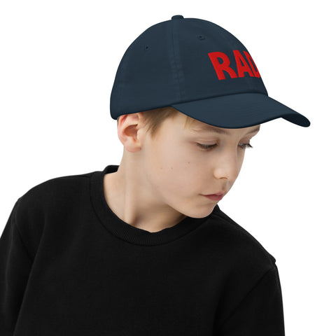 This red RAD Embroidered cap is sure to keep the sun out of your kid’s eyes. Featuring 6 eyelets for breathability and an adjustable strap, it offers a great fit, comfort, and a stylish design.